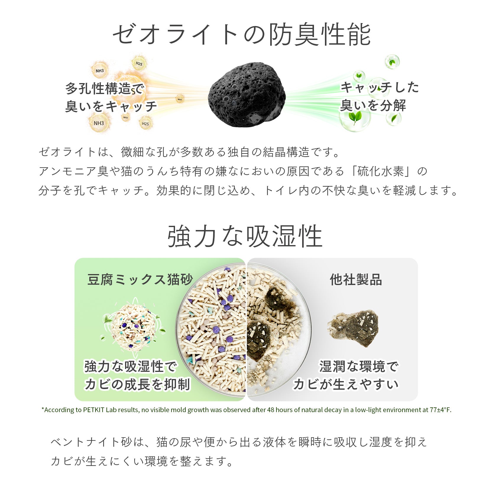 | 製品特徴 | 優れた消臭効果 瞬時の吸水性能 長時間持続する防カビ効果 99%防塵 素早くしっかり固まる 食品グレードの原材料使用 飛び散りにくい トイレに流せる 肉球に優しい2mm |